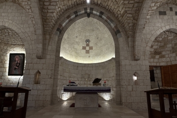 وعلى درج المذبح، في وسط الكنيسة، يوجد لوحة تؤرخ لوفاة الخوري أنطون حبيش حيث نقرأ عليها: هنا ضريح المرحوم الخوري انطون حبيش سنة 1814.