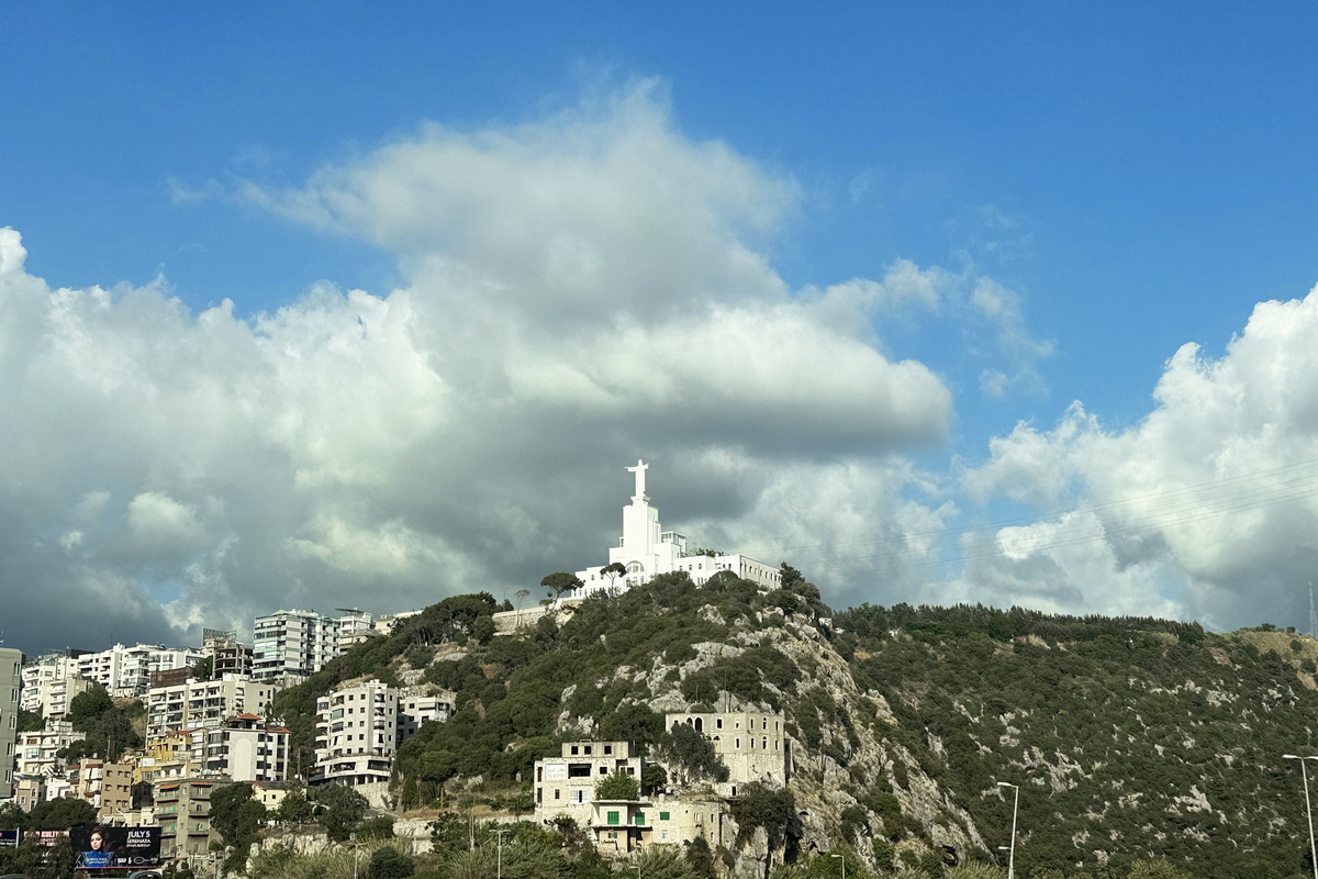 إشترى أبونا يعقوب التلّة في العام ١٩٥٠ وبدأ بناء الدّير. وفي عيد يسوع الملك في ٢٨ تشرين الأوّل عام ١٩٥١، تمّ تدشين المكان. وفي الأوّل من كانون الأوّل عام ١٩٥٢، تمّ تثبيت تمثال المسيح الملك على قاعدة ترتفع ٥٧ مترًا عن الأرض، وتلّة تعلو ٧٥ مترًا عن سطح البحر. يذكر بأنّ التّمثال هو من تنفيذ الفنان الإيطاليّ المهندس إرنستو باليني، Ernesto Pallini الّذي نقله من إيطاليا إلى لبنان في عشرة صناديق. الوزن الإجماليّ للتّمثال هو ٧٥ طنًّا، ويبلغ ارتفاعه ١٢ مترًا، وعرض يديه المفتوحتين ١٠ أمتار، ووزن كلّ يد ٥ أطنان.