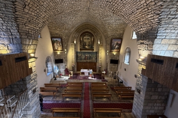 وكان كاهنهم الخوري يوحنا البشعلاني من أكبر الساعين إلى تحقيق هذه الأمنية إذ تولّى بنفسه إدارة هذا المشروع وقد وجدت بين أوراقه أبيات نظمها وتمّ نقشها فوق