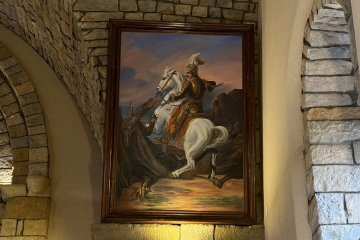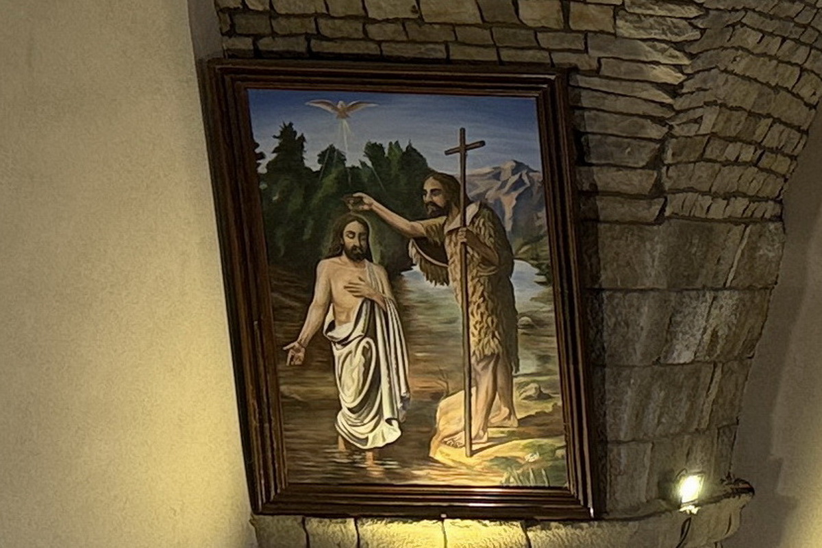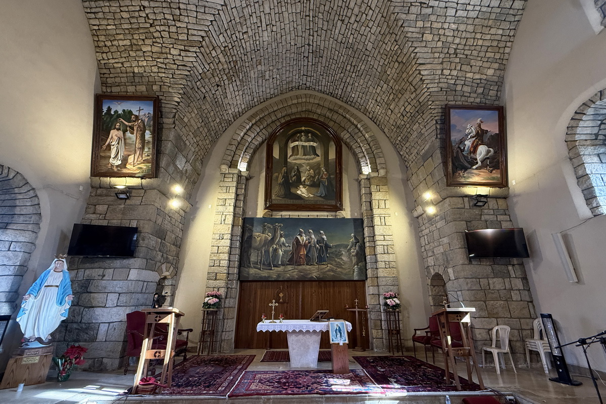 إلى يسار المذبح لوحة لمار جريس من رسم إبن صليما يوسف أبو عسلي عام 1995 وإلى يمينه رسم ليوحنا المعمدان من رسم يوسف أبي عسلي أيضّا وفي أسفل لوحة يوحنّا المعمدان تمثال للسيدة العذراء إحياء لذكرى ماريتا ميشال فريحة 2019–2023