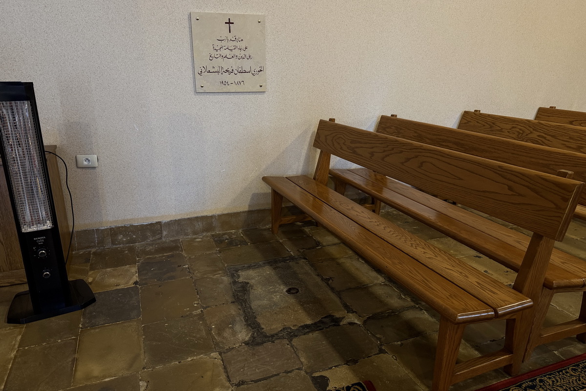 «هنا يرقد بالرب على رجاء القيامة المجيدة رجل الدين والعلم والتاريخ الخوري اسطفان فريحة البشعلاني 1876 – 1954".