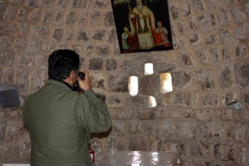 وفي مُحيط الكنيسة، تَنتَشِر بقايا أعمدة ومطاحن ونواميس، ونَجد بِئرين وحَجَرين ضَخمين على شَكلِ مَحدَلتين يتمّ فيهما عصر الزيت بواسِطَة رُحى في مَعصرَة زيتون.. وهما شاهدان على تَلك الحقبة من الزمن...