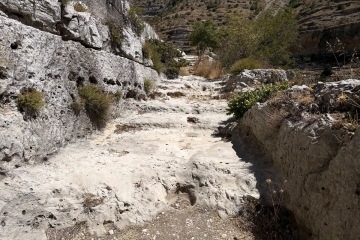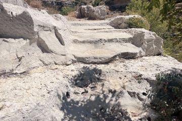 درجات الطريق نُحت مباشرة في الصخر، فيما شُيّد بعضها الآخر بالحجارة المكدّسة.