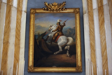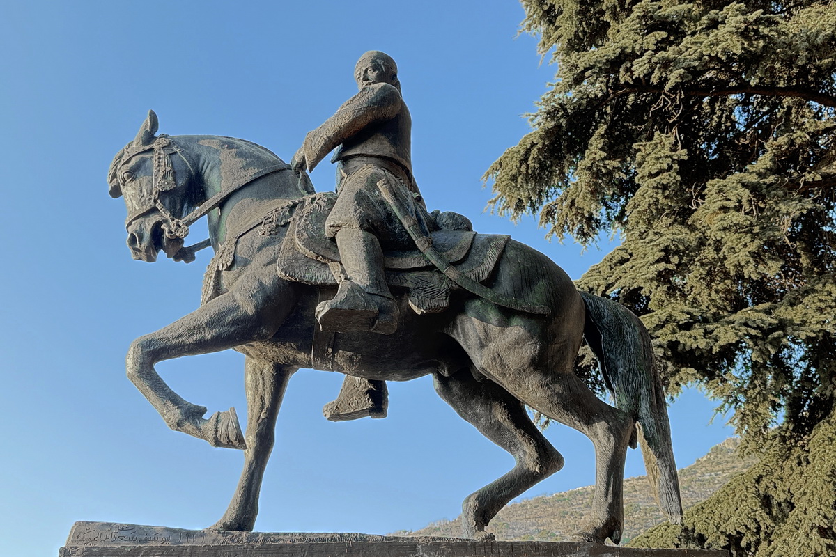 وفي الباحة الغربية للكنيسة، ينتصب تمثال ليوسف بك كرم (المتحف) على صهوة حصان يعود للعام 1932، من عمل النحّات اللبناني يوسف سعدالله الحويك، وفي العام 2019 خضع لعملية ترميم في مُحترف آل بصبوص في رشانا، من قبل الفنّان نبيل بصبوص.