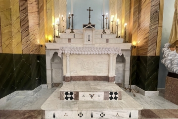 ومع مرور الزمن، برزت تصدُّعات وتشقّقات خطرة في البناء، وبعد دراسات عميقة أشرفت عليها المديرية العامة للآثار، خضعت الكنيسة لترميمٍ هائل، شمل أعمال تدعيم وبنية تحتية وفنيّة... وعند انتهاء الأعمال، أُعيد جثمان يوسف بك كرم إلى ضريحه في الكنيسة، بعدما كان قد سُجِّي في كنيسة مار ماما طوال المدّة التي استغرقتها ورشة الترميم... وهو أيضاً كان قد خضع لعملية صيانة علمية...وكان قد وُضع في البداية، أي في ١٤ أيلول سنة ١٨٨٩ في سكرستيّا مار جرجس، قبل أن يُنقل الى مكانه الحالي في الكنيسة سنة ١٩١٢ .