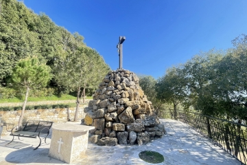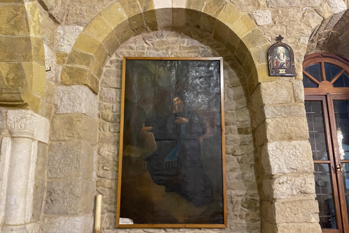 وفي حديقة الدّير، يوجد جزء من منحوتة رومانيّة باللّغة اللّاتينية، تفتقد الى جزء كبير منها، تشير إلى مرور الإمبراطور ماركوس أوريليوس أنطونيوس (كركلا). وبفضل العثور على منحوتة مشابهة لها في بيروت، يمكن استعادة نصّها: