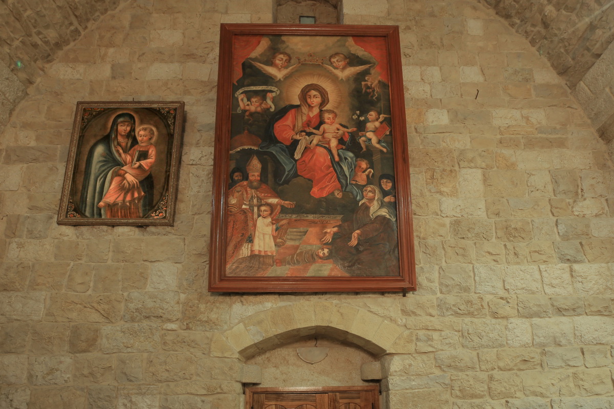 بالعودة إلى الدّير، فإنّه يضمّ كنسية صغيرة قديمة العهد، كرّسها البطريرك اسطفان الدّويهي (1670-1704) في العام 1675. هي كناية عن كنيسة متواضعة، مَعقودة، ذات سوق واحد مَعَ صَحنٍ يَحتوي على حنيَّة مُكوَّرة، تتوسطها لوحة زيتيّة لسيّدة الحقلة. رُمّمت تلك الكنيسة في العام 2010، ويمكن الولوج منها إلى كنيسة الدّير الكبيرة، من خلال باب جانبيّ. يعلو المدخل الغربي للكنيسة الكبرى، كتابة سريانيّة منقوشة حيث نقرأ: شُيِّد هذا الهيكل المبارك على اسم سيِّدتنا مريم العذراء بأيام رئاسة السيَّد البطريرك مار طوبيا الخازن (1756-1766)، باعتناء القس بطرس ديب، بأيام رئاسة القس يوسف باسيل ومساعديه، وفي إسعاف كهنة ورهبان الدّير وأهل الإحسان. تكون شفاعتهم دنيا وآخرة آمين - سنة ١٧٥٥ مسيحيَّة.كما يعلو الباب أيضاً صليب بطريركيّ.