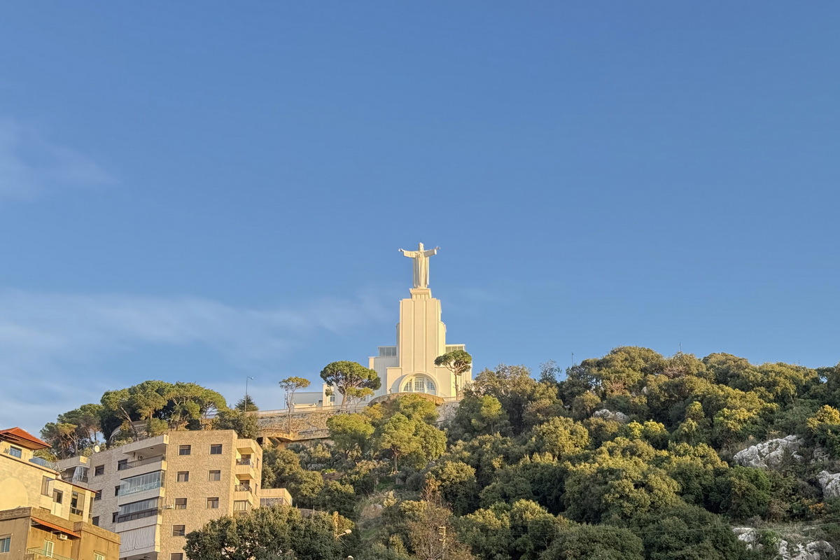 إشترى أبونا يعقوب التلّة في العام ١٩٥٠ وبدأ بناء الدّير. وفي عيد يسوع الملك في ٢٨ تشرين الأوّل عام ١٩٥١، تمّ تدشين المكان. وفي الأوّل من كانون الأوّل عام ١٩٥٢، تمّ تثبيت تمثال المسيح الملك على قاعدة ترتفع ٥٧ مترًا عن الأرض، وتلّة تعلو ٧٥ مترًا عن سطح البحر. يذكر بأنّ التّمثال هو من تنفيذ الفنان الإيطاليّ المهندس إرنستو باليني، Ernesto Pallini الّذي نقله من إيطاليا إلى لبنان في عشرة صناديق. الوزن الإجماليّ للتّمثال هو ٧٥ طنًّا، ويبلغ ارتفاعه ١٢ مترًا، وعرض يديه المفتوحتين ١٠ أمتار، ووزن كلّ يد ٥ أطنان.