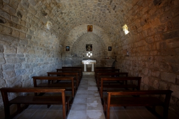 وفي مُحيط الكنيسة، تَنتَشِر بقايا أعمدة ومطاحن ونواميس، ونَجد بِئرين وحَجَرين ضَخمين على شَكلِ مَحدَلتين يتمّ فيهما عصر الزيت بواسِطَة رُحى في مَعصرَة زيتون.. وهما شاهدان على تَلك الحقبة من الزمن...