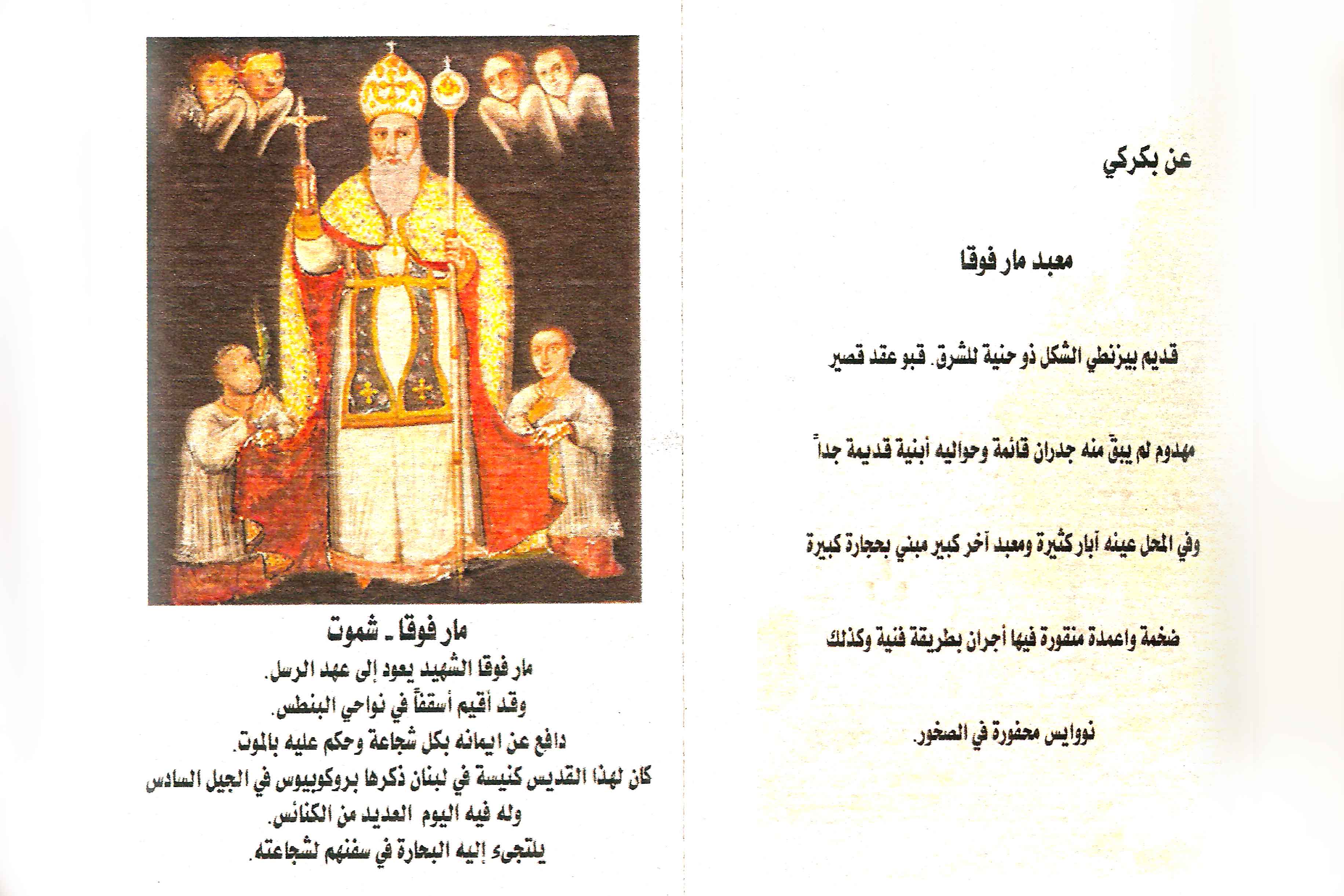 وبعد لجوئنا الى المَصادِر التاريخية المُتعلقة بتلك الحَقَبة، لَم نَجِد لهذه الكنيسة ذكراً في "جورنال فَحِص" الخاص بشموت والعائد الى العام 1865، ولا في هذا الجورنال الخاص بالعام 1884، ولكن لاحظنا أنّه أٌشير إليها في جورنال عام 1900 بالقول: "كنيسة مار فوقا خِربة يُقدَّس فيها يوم عيدها بإذنٍ شفاهيّ من المطران يوسف فريفر"، وهو كلّ ما ذُكِر عنها في هذا الجورنال، حتّى إنّ إصدار العام 1912 لم يأتِ على ذِكرها.